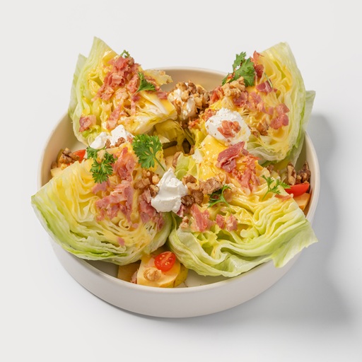 کاهو پیچ_مغز گردو_بیکن_پنیر خامه ای_گوجه گیلاسی_سس آنتراکوت